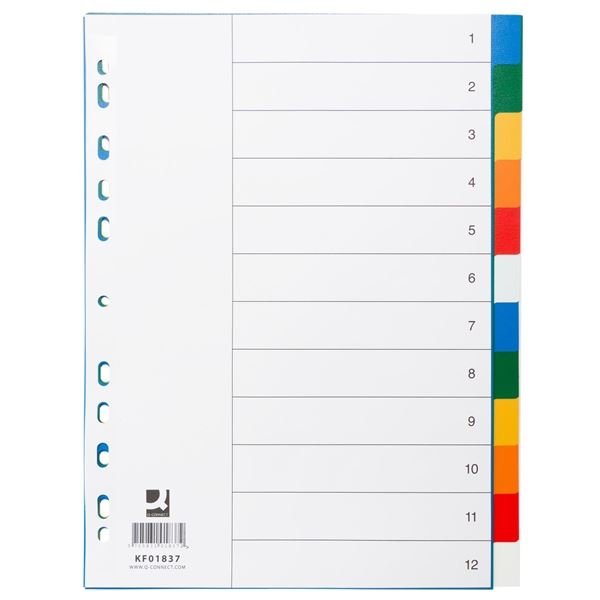 Plast.rozlišovače Q-Connect-A4,bar.okraj.,12 listů