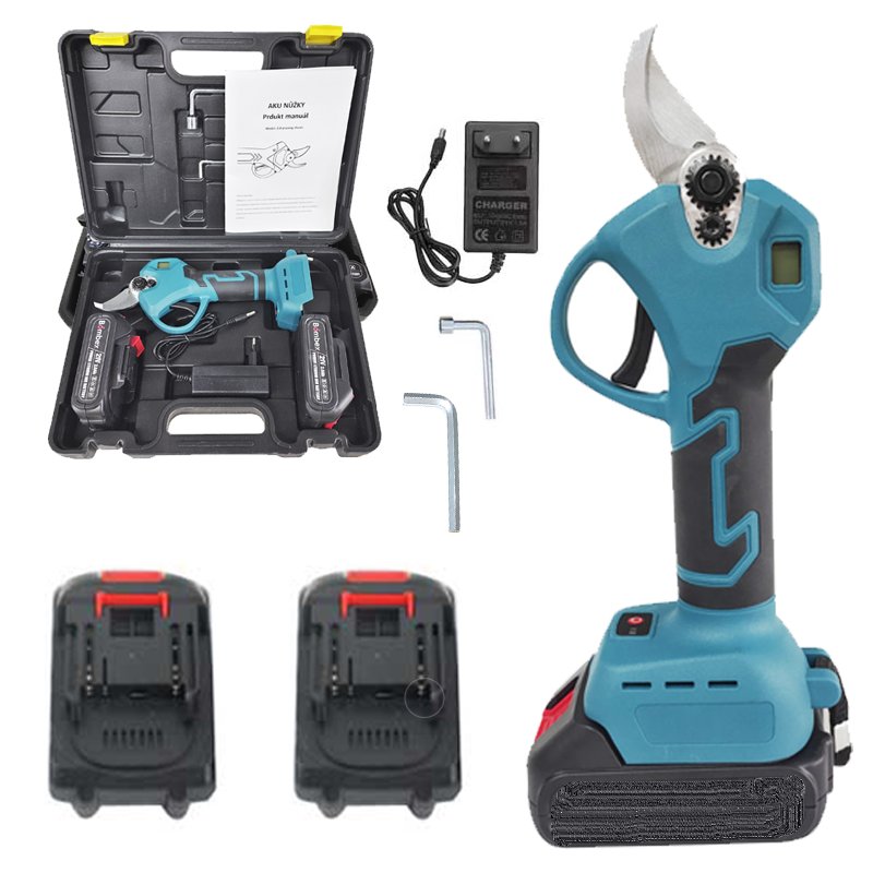 Wysyłamy kompletne urządzenie z ładowarką, 2 bateriami 21V, 2 kluczami do dokręcania, smarem, wszystko w praktycznej walizce. Liczba baterii w zestawie: 2 sztuki, 2000 mAh. Waga nożyc: 1,07 kg