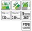 Narzędzie o długości 310 mm łatwo dopasujesz do swoich potrzeb dzięki 8 pozycjom ustawienia oraz obrotowej głowicy o 360 stopni, która pozwala na koszenie pod dowolnym kątem. Ostrze nożyc pokryte jest powłoką PTFE, co zapewnia gładkie i precyzyjne cięcia bez przyklejania się trawy oraz większą odporność. Rączki wyposażone są w powłokę antypoślizgową, która gwarantuje wygodny i pewny chwyt nawet podczas dłuższej pracy w ogrodzie.