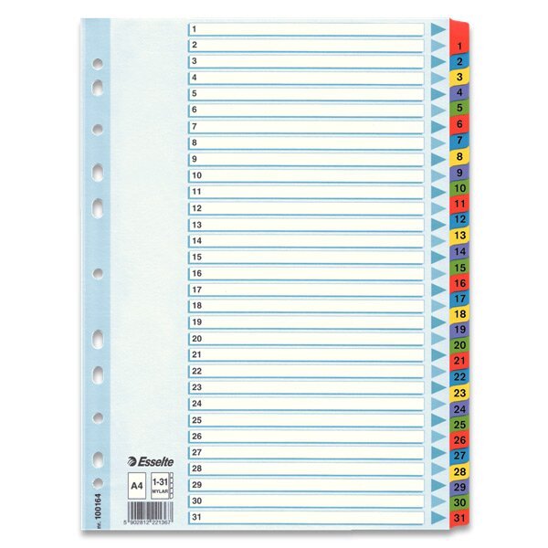 Przekładki A4 1-31 kolor Mylar, Esselte
