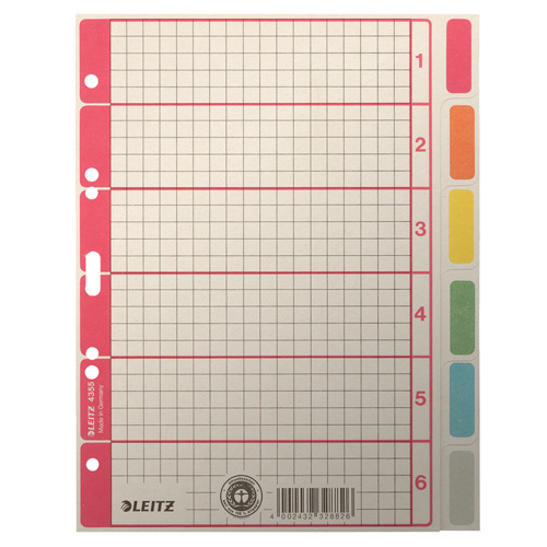 Kartonové rozlišovače značky Leitz. Formát A5 zpřehledňuje orientaci v kroužkových a pákových pořadačích.Set obsahuje 6 barevných dělících listů. przeczytaj całość