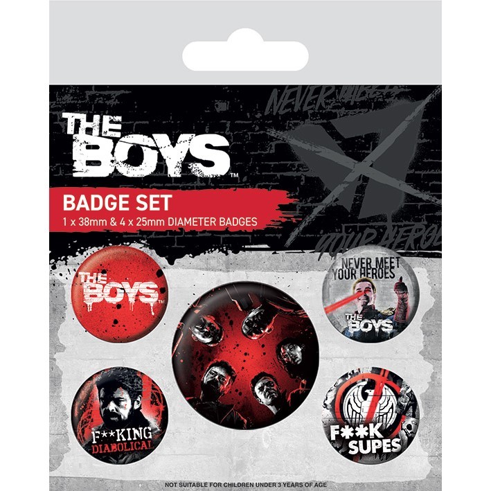 Sada obsahuje 5 placek s grafikou seriálu The Boys. Pěkný doplněk oblečení nebo ozdoba vašeho batohu! przeczytaj całość