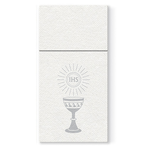 Kapsy na příbory PAW Airlaid 40x40cm My First Communion Silver, 25 ks/bal
