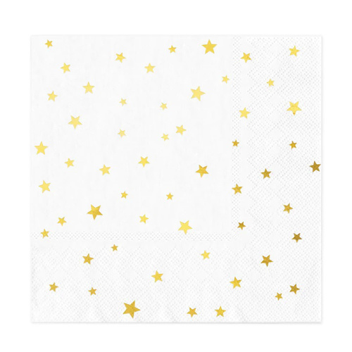 Papírové ubrousky bílé se zlatými hvězdičkami, 10 ks - 33 cm x 33 cm