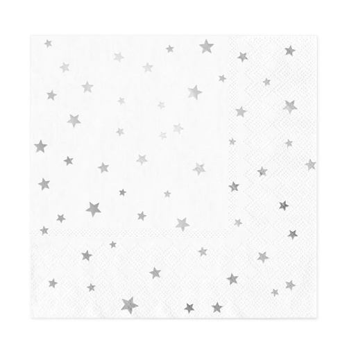 Papírové ubrousky bílé se stříbrnými hvězdičkami, 10 ks - 33 cm x 33 cm