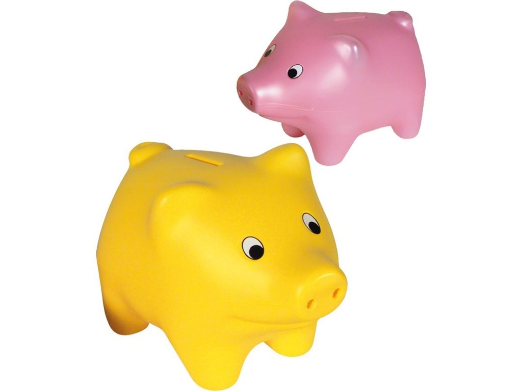 něco koupí z vlastních úspor. Plastové prasátko o velikosti 19 cm pro