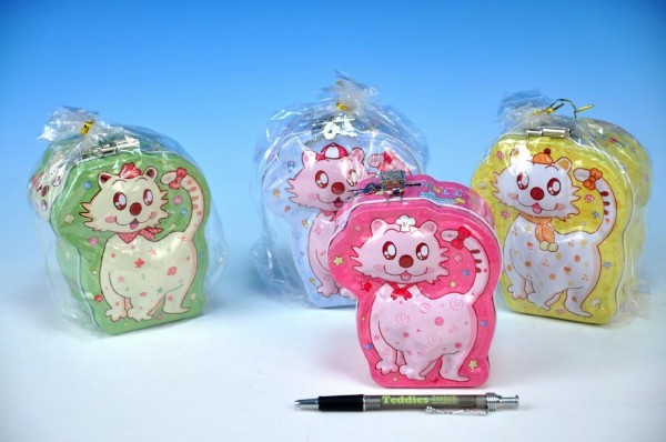 Pokladnička kočička plech 13cm asst 4 barvy v sáčku