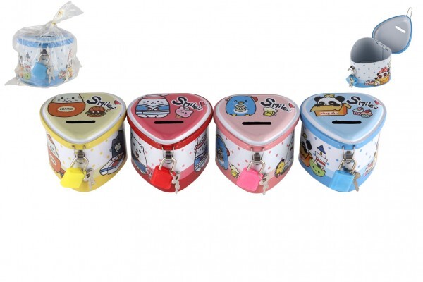 Pokladnička plechová srdce se zámkem 8x7cm 4 barvy, 1 kus