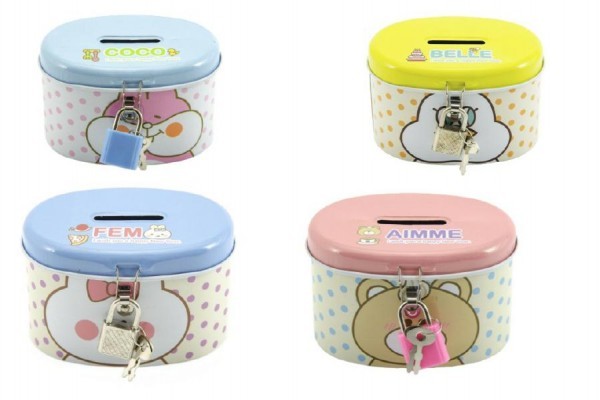 Pokladnička se zámkem plech 10x6x7cm asst 4 druhy v sáčku