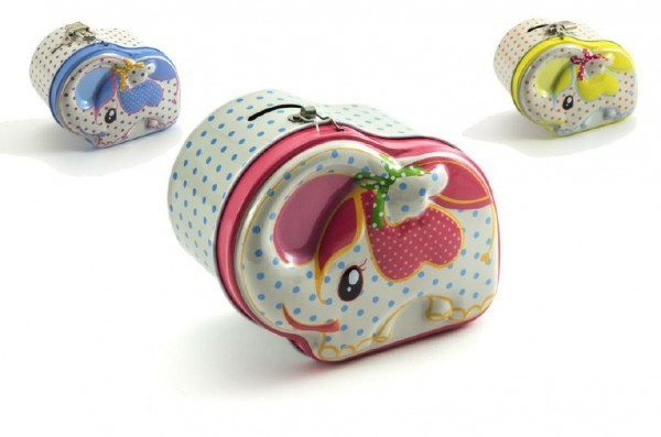 Pokladnička se zámkem plech 10cm asst 3 barvy v sáčku