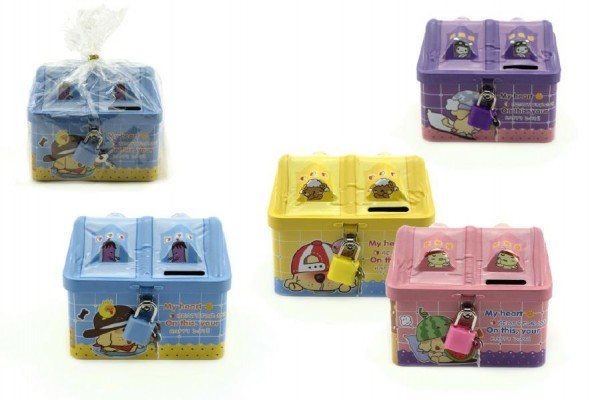 Pokladnička se zámkem plech 11cm asst 4 barvy v sáčku