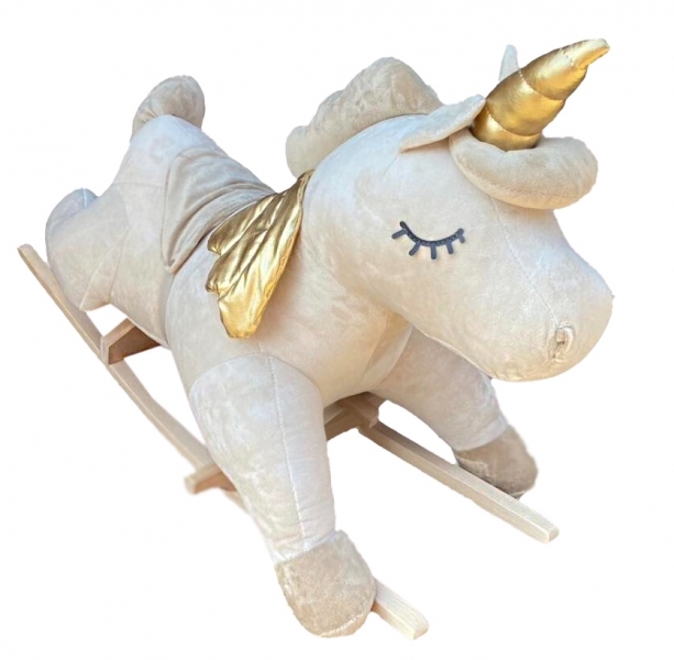 Houpací Jednorožec.Můžete si s ním hrát mnoha způsoby: sedět na něm, mazlit se nebo houpat.Až dítě povyroste, stačí popruhy odepnout a houpačka se promění ve velkého plyše.Hračka je určena pro děti od 12 měsíců.Rozměry:- výška cca 56 cm,- délka cca 86 cm,- šířka cca 34 cm. przeczytaj całość