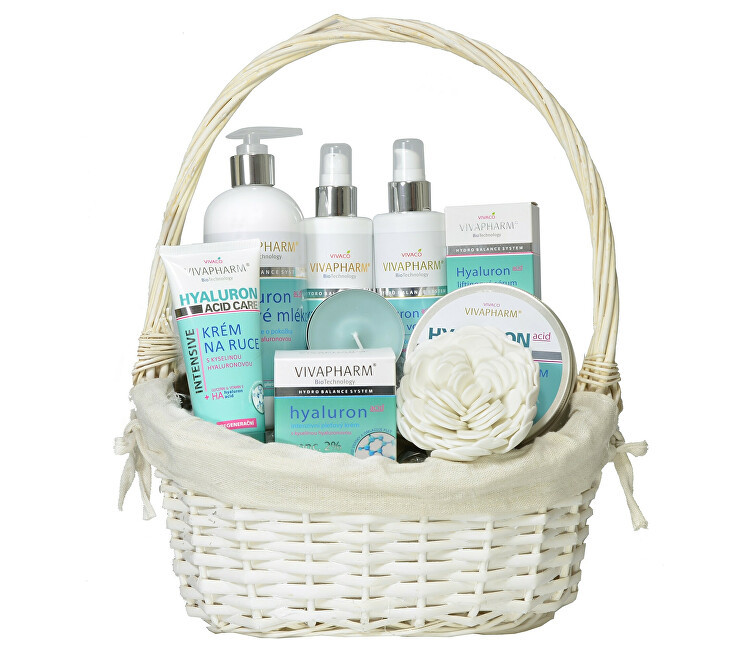 Vivaco Velká dárková sada kosmetiky s kyselinou hyaluronovou v proutěném koši