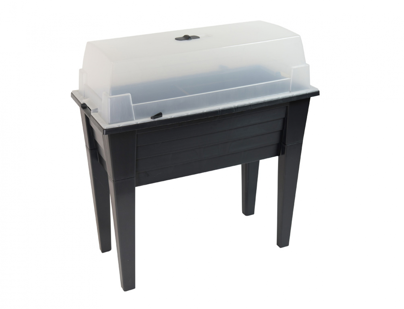 Plastový, matný truhlík vhodný pro výsev a výsadbu 3v1. Set obsahuje samotný truhlík z odolného, matného plastu, odnímatelné nožičky a víko. Variabilní řešení pro přizpůsobení produktu různým podmínkám a potřebám pěstitele. Tělo truhlíku je zdobeno podélnými pruhy. Obdélníkového půdorysu. Objem cca 50l. Rozměry: délka 80cm, hloubka 40cm, výška 83cm. Barva: antracitová.