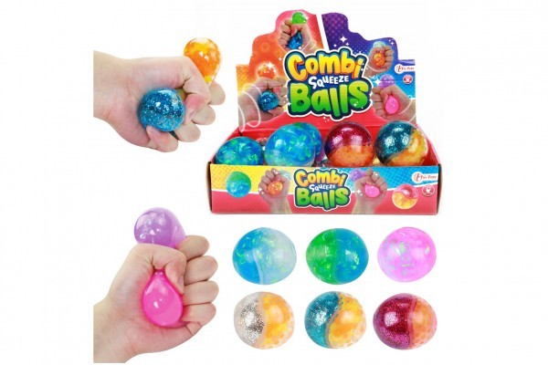 Míček naplněný barevnou měkkou silikonovou hmotou, rozdělenou na dvě půlky a různé barvy. Míček silou zmáčkněte v dlani a začnou se dít opravdu nečekané věci. Po zmáčknutí uvidíte, jak se v jedné půlce třpytí třpytky a druhé Vám budou příjemně masírovat dlaň malé měkké kuličky. Tento míček nebudete chtít dát z ruky.