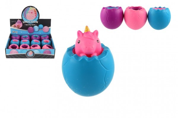 Jednorožec ve vajíčku mačkací antistresový plast 3 barvy v sáčku 7x6cm 12ks v boxu