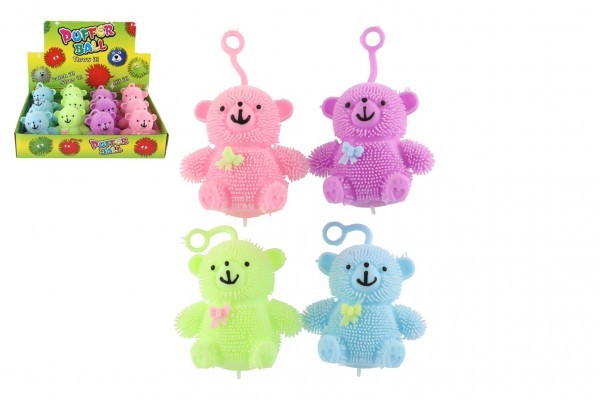 Medvěd mačkací chlupatý antistresový svítící silikon 9cm na baterie 4 barvy 12ks v boxu