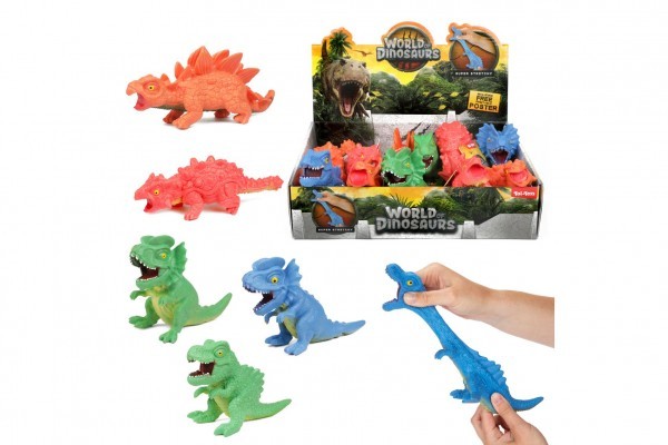 Dinosaurus antistresový sliz mačkací silikon 4x18cm mix druhů 12ks v boxu