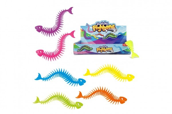 Rybí kostra 23cm sliz natahovací antistresová elastická mix barev 12ks v boxu