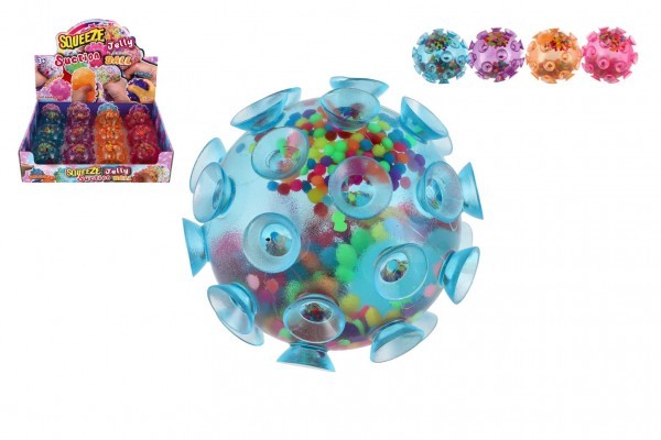 Míček s přísavkami antistresový mačkací silikon 7cm 4 barvy 12ks v boxu