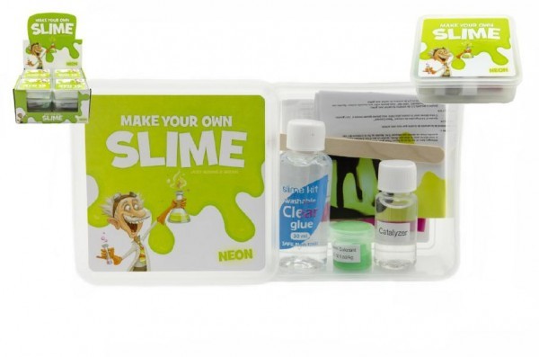 Sada na výrobu slizu neon asst 2 barvy v plastové krabičce 10x3,5cm 12ks v boxu