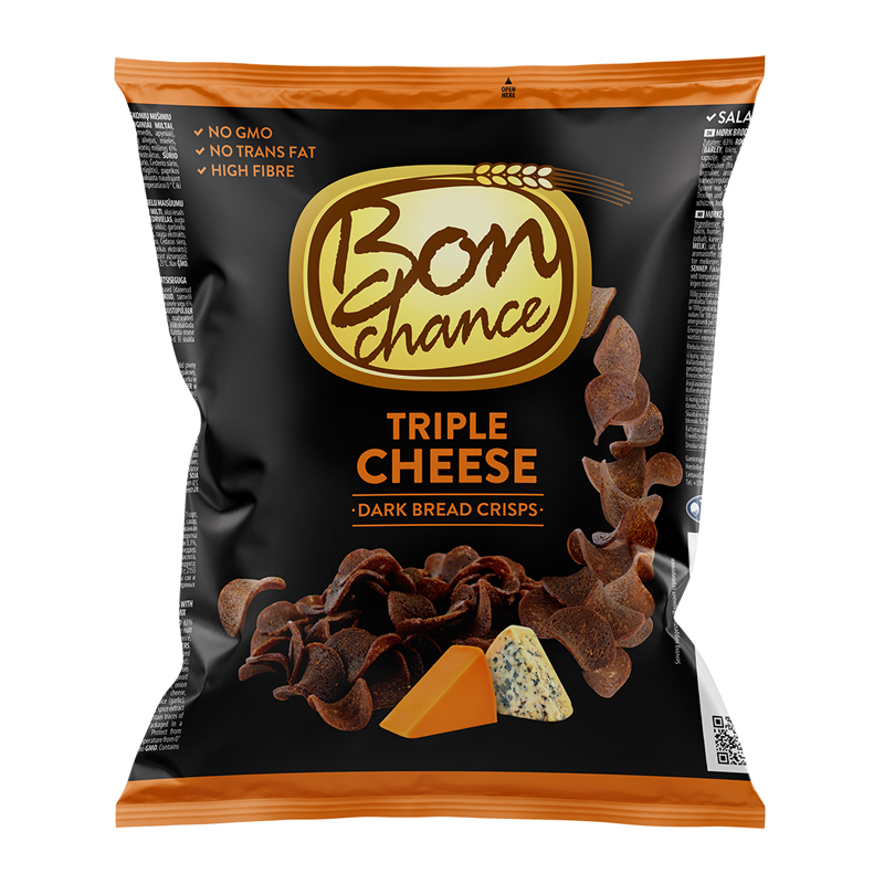 Bon Chance žitno-pšeničné chlebové chipsy se třemi druhy sýrů 120g