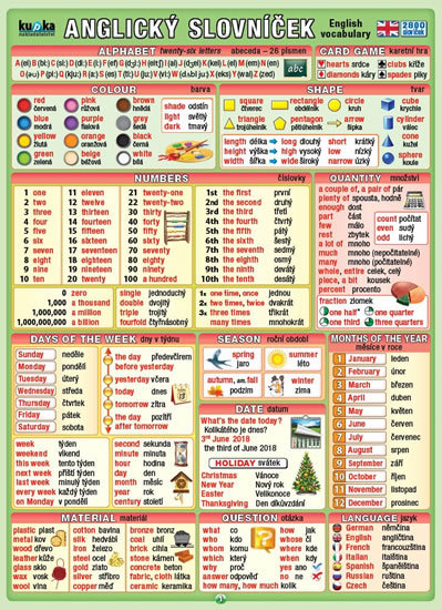 Ilustrowany angielsko-czeski słowniczek z 2800 słówkami w 57 tematach kompleksowo obejmuje podstawowe słownictwo. Praktyczna składanka w formacie A5 z laminowaną powłoką. przeczytaj całość