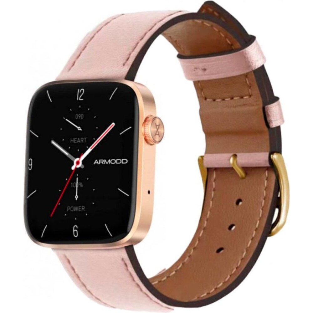 ARMODD Squarz 11 Pro zlatá s růžovým koženým řemínkem + silikonový řemínek