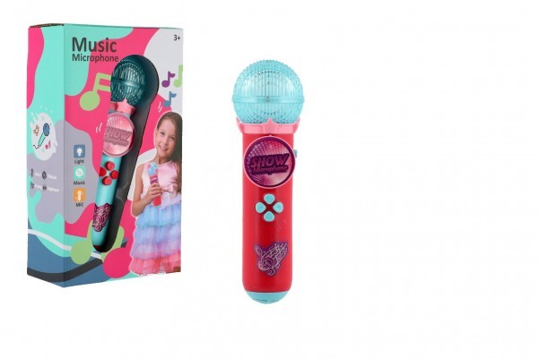 Mikrofon 18cm plast na baterie se světlem se zvukem 2 barvy v krabici 13x24x7cm