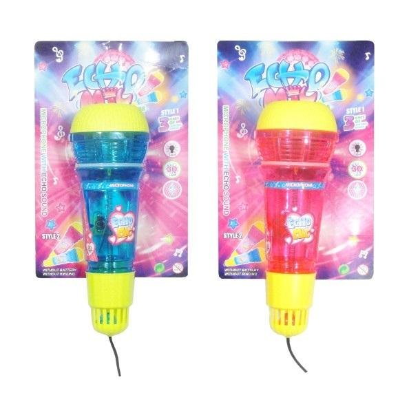 Klasyczny mikrofon "Echo" skonstruowany tak, by odbijać dźwięk ludzkiego głosu. Produkt świeci kolorowym światełkiem. Dodatkowo w środku znajduje się dzwoneczek, który oddziałuje na zmysł słuchu u dziecka.#&Zabawka działa na baterie typu AG3. Baterie znajdują sie w zabawce. #&Dla dziecka powyżej...