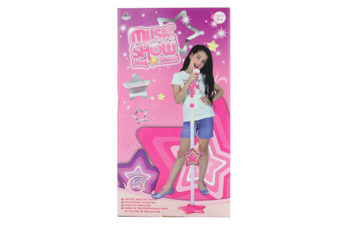 Plastowy dziewczęcy mikrofon na baterie ze stojakiem. Można połączyć z odtwarzaczem MP3. Zasilanie 3x baterie AA (nie są dołączone). Wymiary opakowania ok. 21 x 39 x 5,5 cm. Wiek 3+ przeczytaj całość
