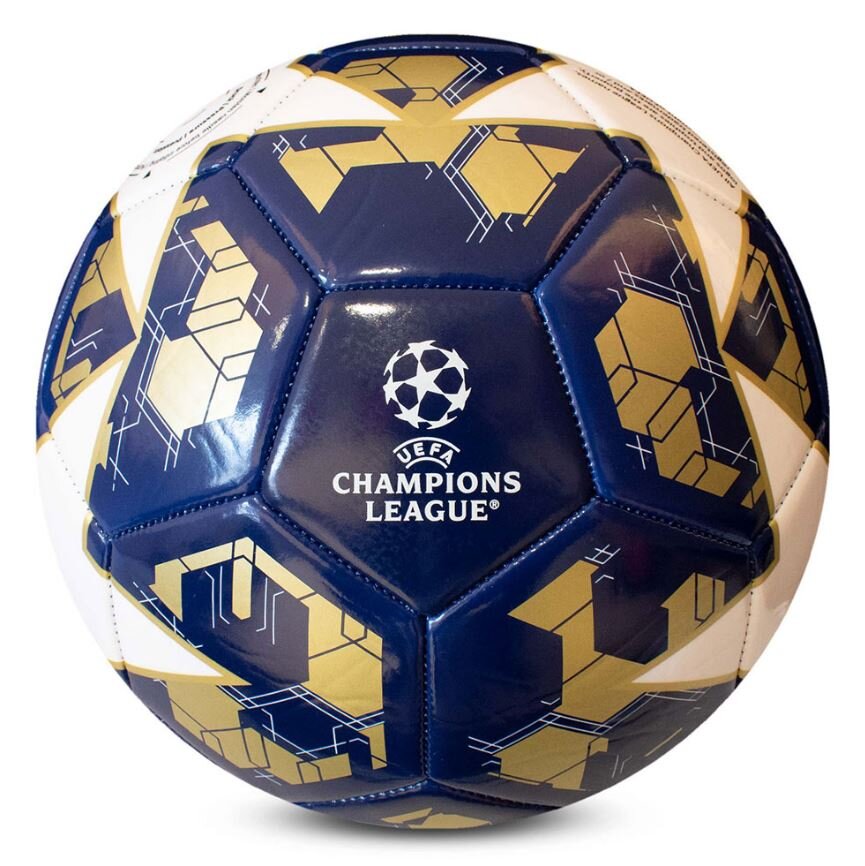 Oficiální produkt - fotbalový míč z katalogu zboží s licencí organizací evropského fotbalu UEFA (Unie evropských fotbalových asociací).Zboží je legálně licencováno a prodáváno se souhlasem vlastníků licenčních práv.Bílo-námořnicky modrý PVC míč s 32 panely zdobený ikonickými hvězdami Ligy mistrů...