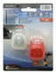 Światło na rower, wózek lub hulajnogę z prostym systemem mocowania za pomocą elastycznych silikonowych obejm. Można łatwo przymocować np. do kierownicy, pręta pod siodełkiem lub innej części roweru. Można stosować na kierownice o różnych średnicach. Zestaw składa się z dwóch sztuk: jedno światło jest białe, drugie czerwone. Światła oferują zasięg do 15 metrów i strumień świetlny 18 lm. Sterowanie odbywa się przez naciśnięcie ukrytego włącznika na górnej części. Światło oferuje 3 tryby (ciągłe świecenie / szybkie miganie / wolne miganie). Każde ze świateł jest zasilane dwoma bateriami CR2032 (są w zestawie), dzięki czemu światło działa do 7 godzin. Baterie można łatwo wymienić, zdejmując silikonową osłonę z korpusu światła i zdejmując pokrywkę na baterie.