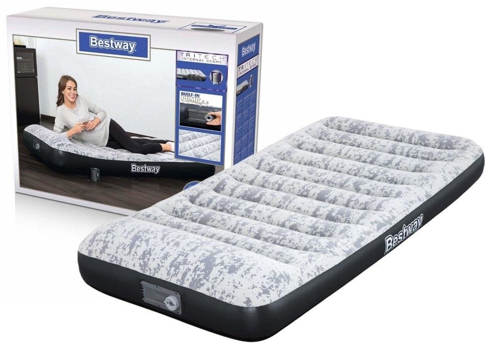 Dmuchany Materac Z Pompką 188 x 99 x 30 cm Bestway 67834 Materac turystyczny przeznaczony jest do użytku zarówno wewnętrznego jak i zewnętrznego. Został wykonany z wytrzymałego materiału, dzięki czemu jest odporny na uszkodzenia. W swojej górnej części pokryty jest miękkim flokowanym materiałem....