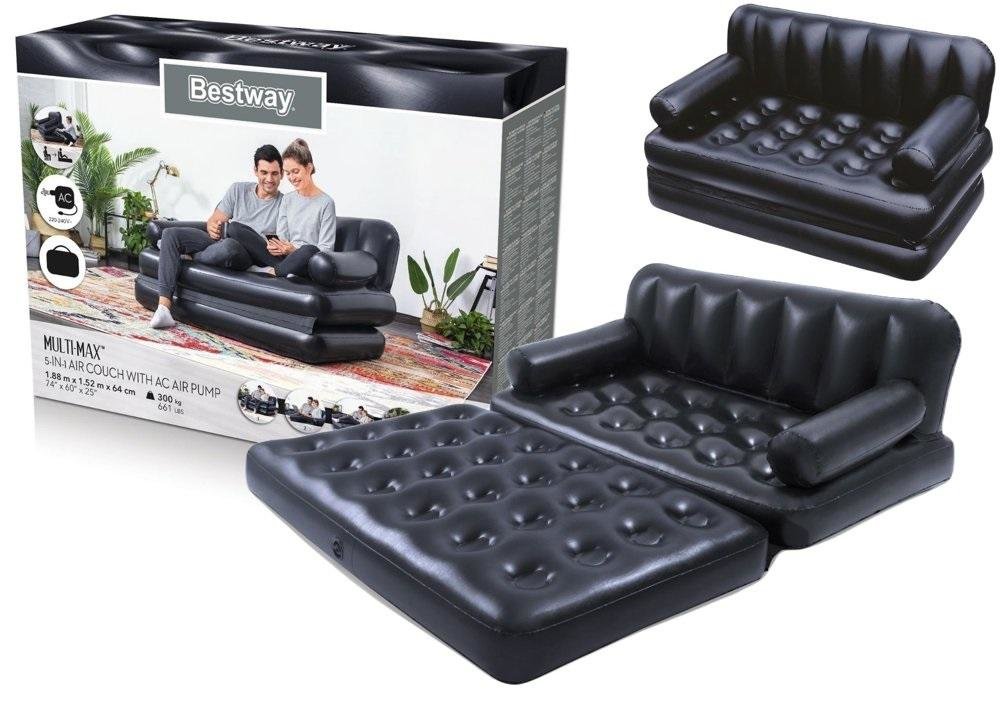 Dmuchany Materac Sofa 188 x 152 x 64 cm Bestway 75056 Już teraz możesz w parę sekund zamienić wysoką sofę na dwuosobowe łóżko, łóżko z oparciem lub po prostu bardzo wygodny materac. Decyzja należy tylko do Ciebie. Sofa wykonana została z mocnego PVC. Wygodne podłokietniki sprawiają, że oglądanie...