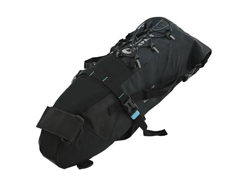 Tato taška poskytuje až 10 litrů prostoru pro vaše věci. Je upevněna pod sedlem širokým popruhem, který obepíná sedlovou trubku. Pro zajištění stabilního držení slouží dva nastavitelné popruhy, které se připevňují ze spodní strany přímo na sedlo.