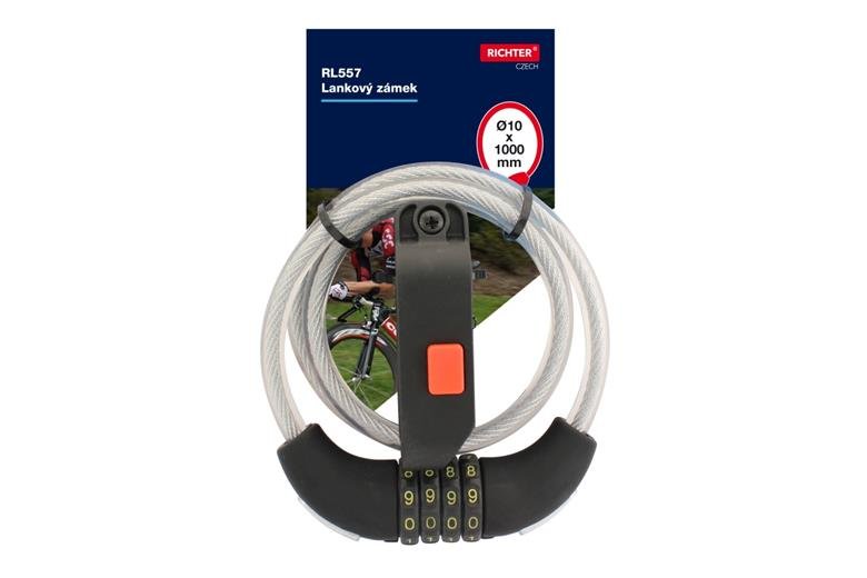 S kódovým lankovým zámkem Richter zabezpečíte své věci. Využijete ho především pro své kolo. Uzamknete ho k nepohyblivému stojanu nebo zábradlí ukotvenému k zemi. Nepotřebujete ani žádný klíč. Zámek funguje pomocí čtyřmístného kódu. Poskytne vám výběr z 10 000 kombinací. Své heslo si můžete kdykoliv změnit na číselníku. V balení navíc najdete také držák na kolo, abyste zámek nemuseli převážet v batohu.