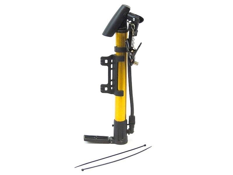 pompka rowerowa, metalowa, wys.33cm, z podkładką pod stopę, ruchomy wężyk, klips i uchwyt mocujący; 42x10cm PPB przeczytaj całość