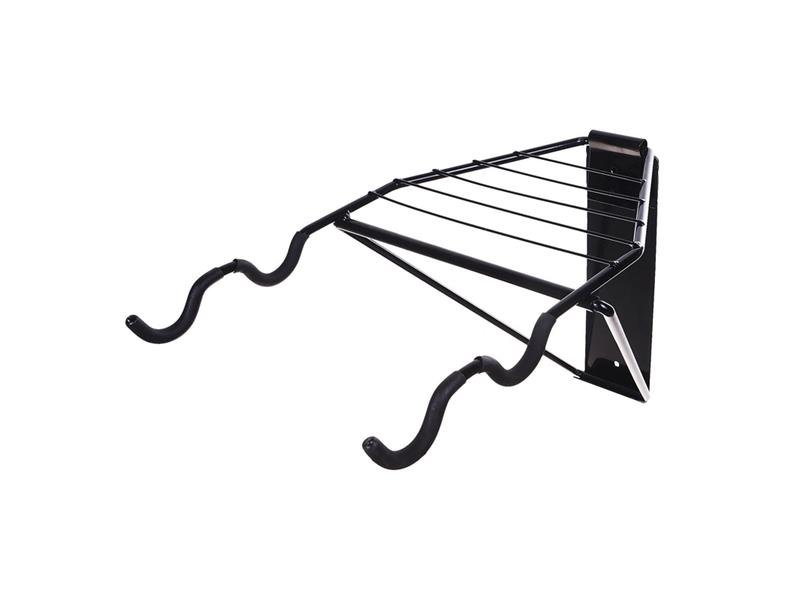 Držák na kolo COMPASS XC-80008 Sklopný držák kol určený k montáži na zeď.Držák je tvořen pevnou základnou a výklopným ramenem pro 2 kola, který je navíc vybaven praktickou mřížkou (poličkou), na kterou lze odkládat různé drobnosti jako např. přilbu, rukavice...