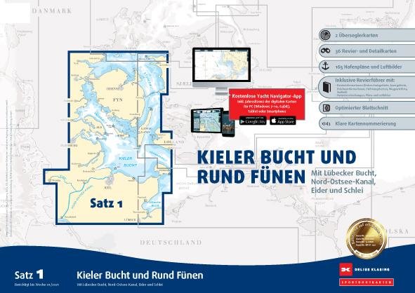 Sportbootkarten Satz 1: Kieler Bucht und Rund Fünen (Ausgabe 2021) (angielski)