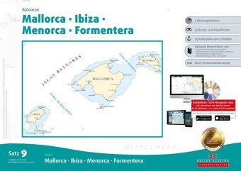 Der Satz 9 der Delius Klasing Sportbootkarten enthält 3 Überseglerkarten sowie 25 Revier- und Detailkarten zur Navigation rund um die balearischen Inseln Mallorca, Ibiza, Menorca und Formentera.