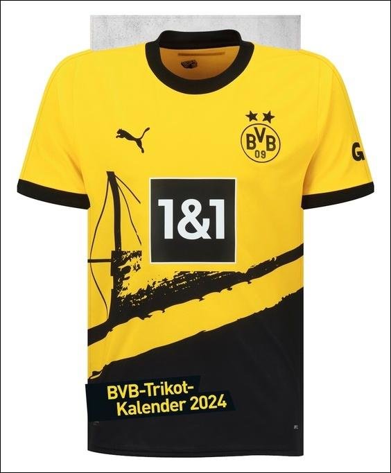 Borussia Dortmund Trikotkalender 2024. Kalender im originalen Trikot-Design, perfekt für Fans des BVB. Die tollsten Spielerfotos (niemiecki)
