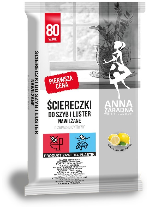 Ściereczki nawilżane do szyb zapach cytryny 80 szt., Stella