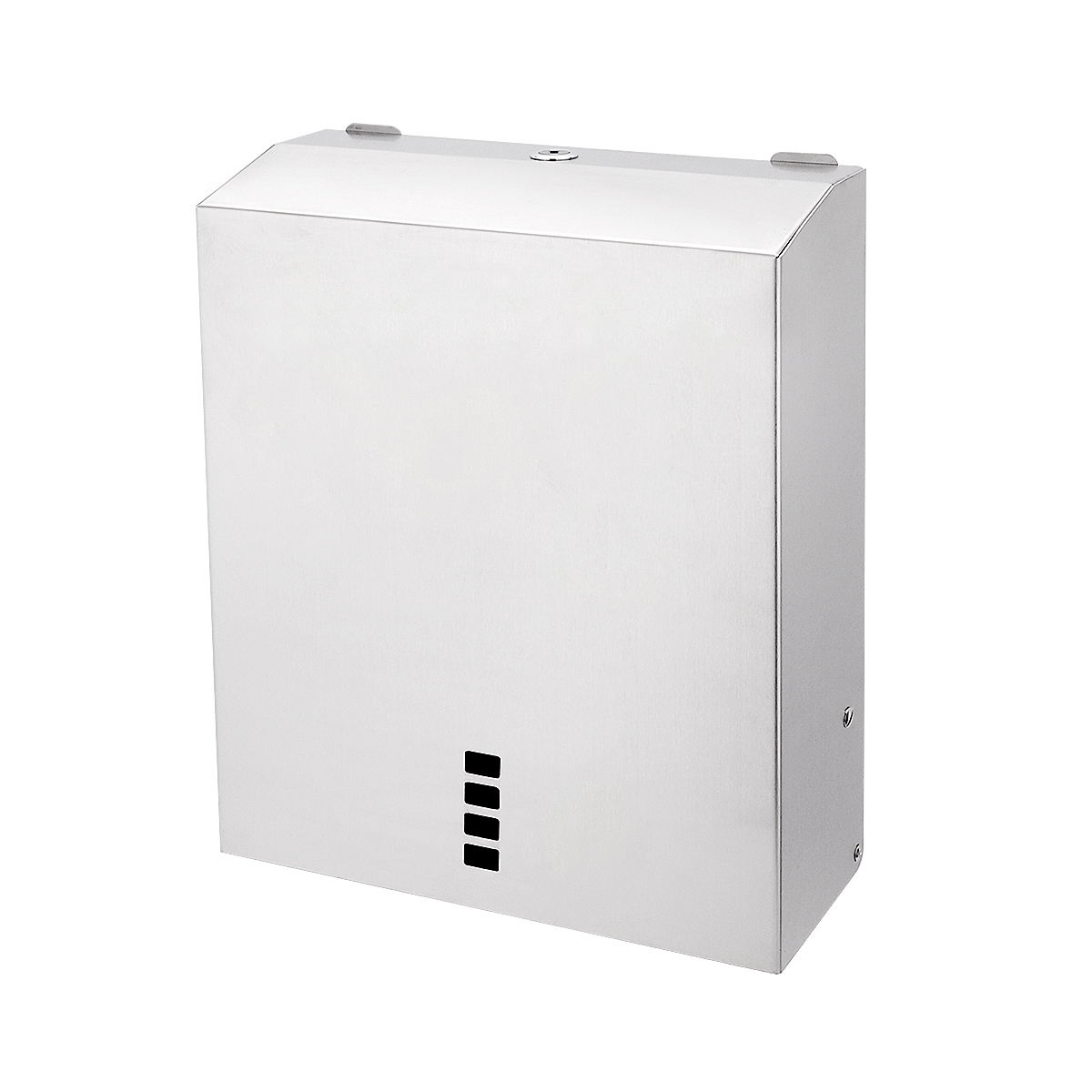 Zásobník papírových ručníků skládaných nerez na stěnu velký je skvělým doplňkem do koupelny. Uchycení zásobníku pomocí 2-3 šroubů, dle potřeby. Rozteč mezi 2 hlavními otvory pro uchycení 229-237 mm. Součástí balení jsou 3 šrouby, 3 hmoždinky, 2x bezpečnostní klíček. Doporučené naplnění zásobníku...