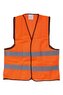 Oranžová polyesterová výstažná vesta, 2 horizontální reflexní pruhy, zapínání na suchý zip, velikost UNI , CE EN 471. przeczytaj całość