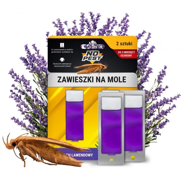 NO Pest Odstraszacz moli o zapachu lawendy to skuteczne i wygodne rozwiązanie, które zapobiega zniszczeniom ubrań spowodowanym przez mole. Ta praktyczna zawieszka usuwa uciążliwe mole i jednocześnie przyjemnie perfumuje szafę zapachem dzikiej lawendy.