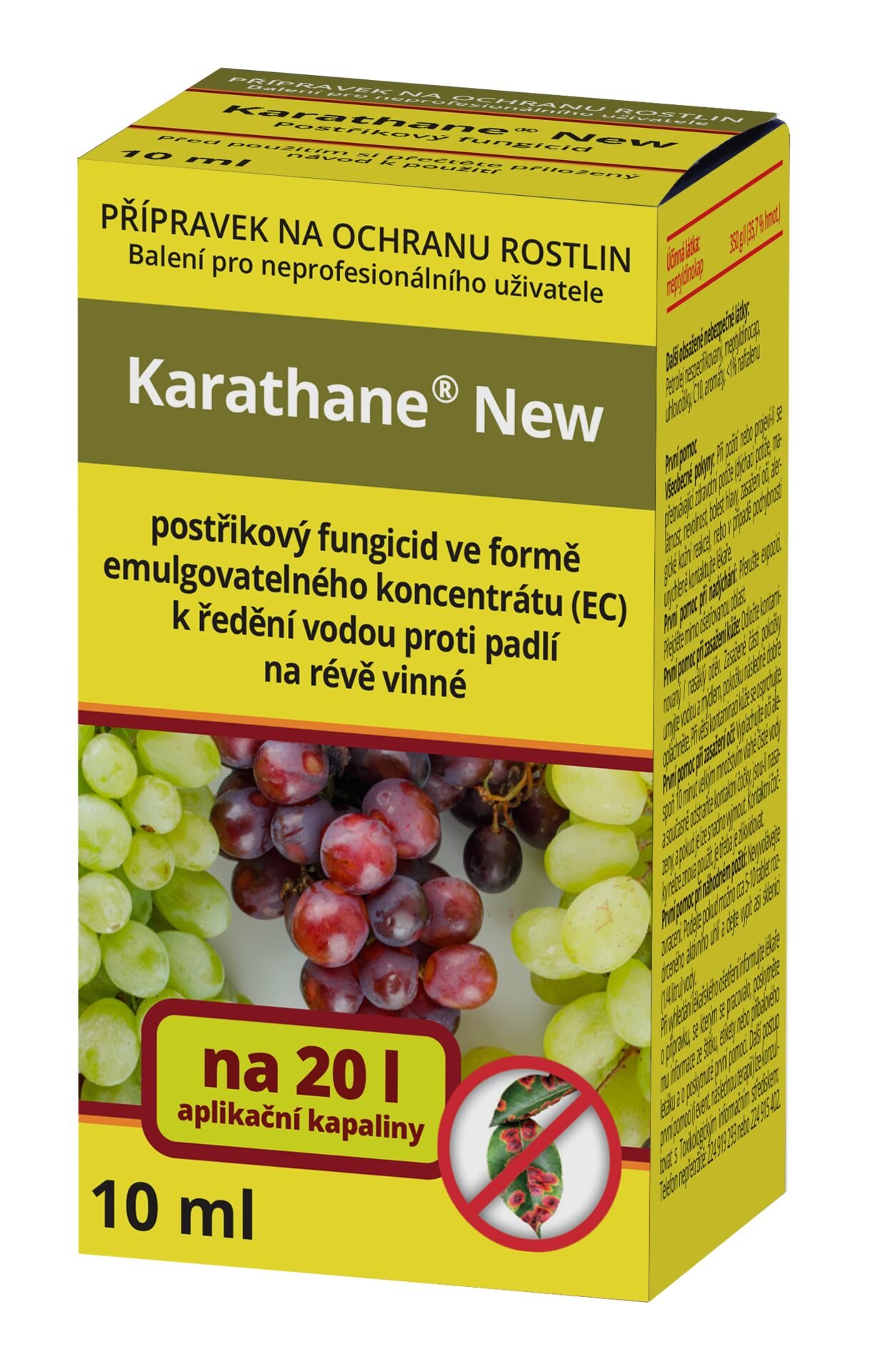 Karathane New jest fungicydem kontaktowym do oprysku, charakteryzującym się działaniem kuratywnym, eradykacyjnym i zapobiegawczym przeciw mączniakowi prawdziwemu winorośli, a jednocześnie ograniczającym występowanie i szkodliwość przędziorków. Działa unikalnie przeciw przezimowującej grzybni mączniaka w winnicach, dlatego bywa stosowany także w pierwszych opryskach.