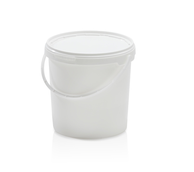 Plastowe białe wiadro z pokrywą z zabezpieczeniem i uchwytem do przenoszenia. Nadaje się do przechowywania substancji stałych i ciekłych. Wykonane z polipropylenu (PP) i w większości przypadków posiada oryginalne zamknięcie (zabezpieczenie przed otwarciem). Pojemność 10700 ml, średnica 27,9 cm i wysokość 27 cm. Nadaje się do kontaktu z żywnością. EAN