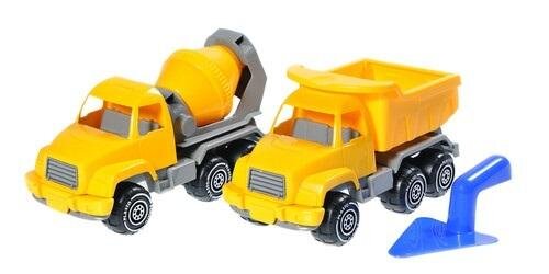 Zestaw murarza. Betoniarka, Wywrotka 26 cm z kielnią.Zestaw konstrukcyjny, 3 części. Długość każdego pojazdu 26 cm.Wysokiej jakości zestaw konstrukcyjny Plasto zawiera wywrotkę, betoniarkę i kielnię. Długość tych wytrzymałych pojazdów wynosi 26 cm.Zalecenia wiekowe 1+.Wyprodukowano w...