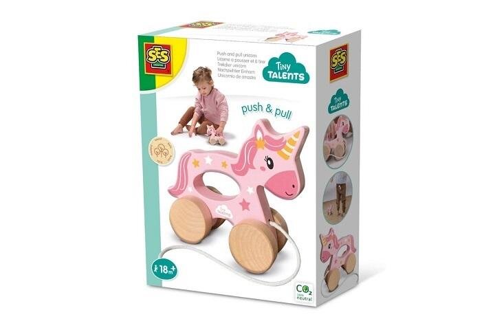 Piękny różowy jednorożec do ciągnięcia, wykonany z drewna i wyposażony w solidne koła do zabawy. Pchnij jednorożca, wykorzystując otwór jako uchwyt lub pociągnij za sznurek, aby jednorożec jechał z tyłu. Nowoczesny i uroczy wzór jednorożca, rozmiar dostosowany do dziecięcych dłoni. przeczytaj całość